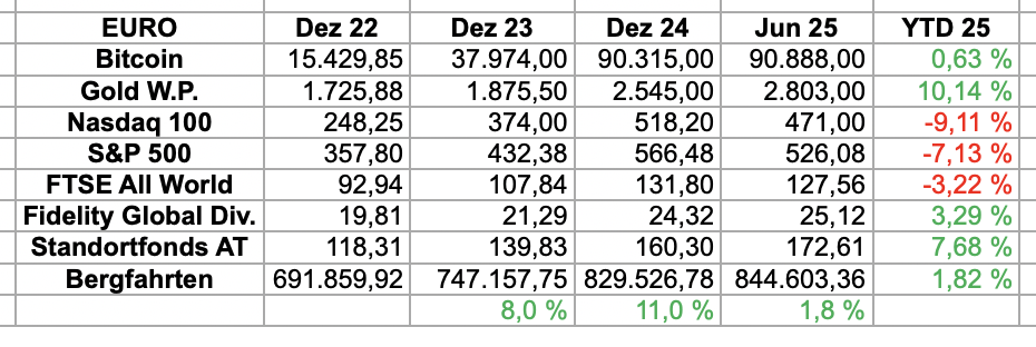Das Highlight diesen Monats war der Meilenstein von 200K Netto Dividenden total 1995 bis Juni 2025 🍀