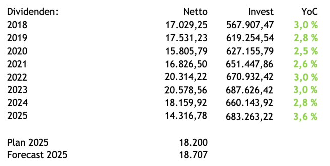 2-5 Prozent sind relevant und Dividenden Einkommen Kalenderwoche 27 / 2025 🐢