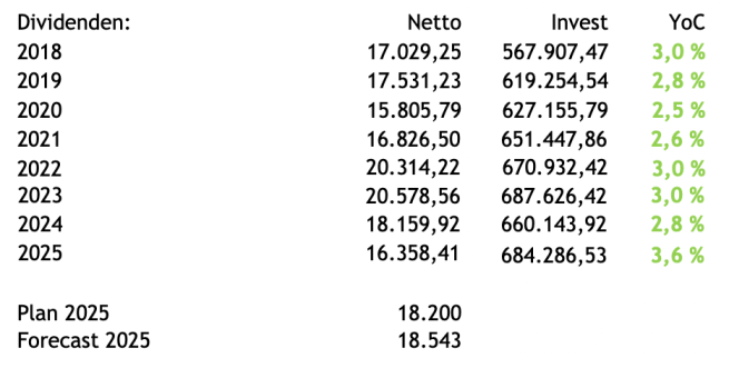Dividenden Einkommen Kalenderwoche 34 / 2025: