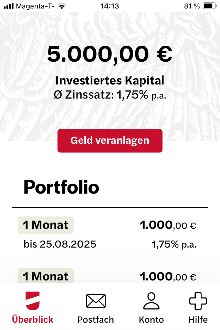 Apropos Tech – ich hatte meinen Bundesschatz (monatliche Staatsanleihen) 2024 ursprünglich analog abgeschlossen. Die Einschränkung war dass ich mein Handy mit Reisepass registrieren hätte müssen und ich wollte nicht quer durch Niederösterreich reisen und einen Tag zu verplempern.