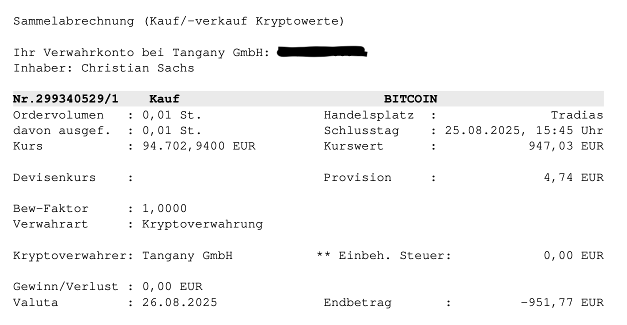 Der Handelsplatz dazu ist Tradias und gelagert werden die Satoshi bei Tangany GmbH in München.