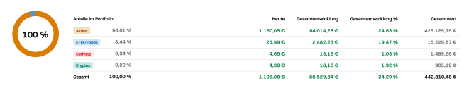 Mein Flatex Portfolio sieht nun so aus – alles schön Grün aktuell ✅