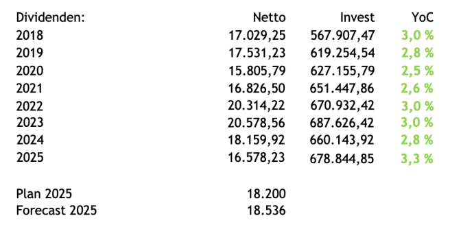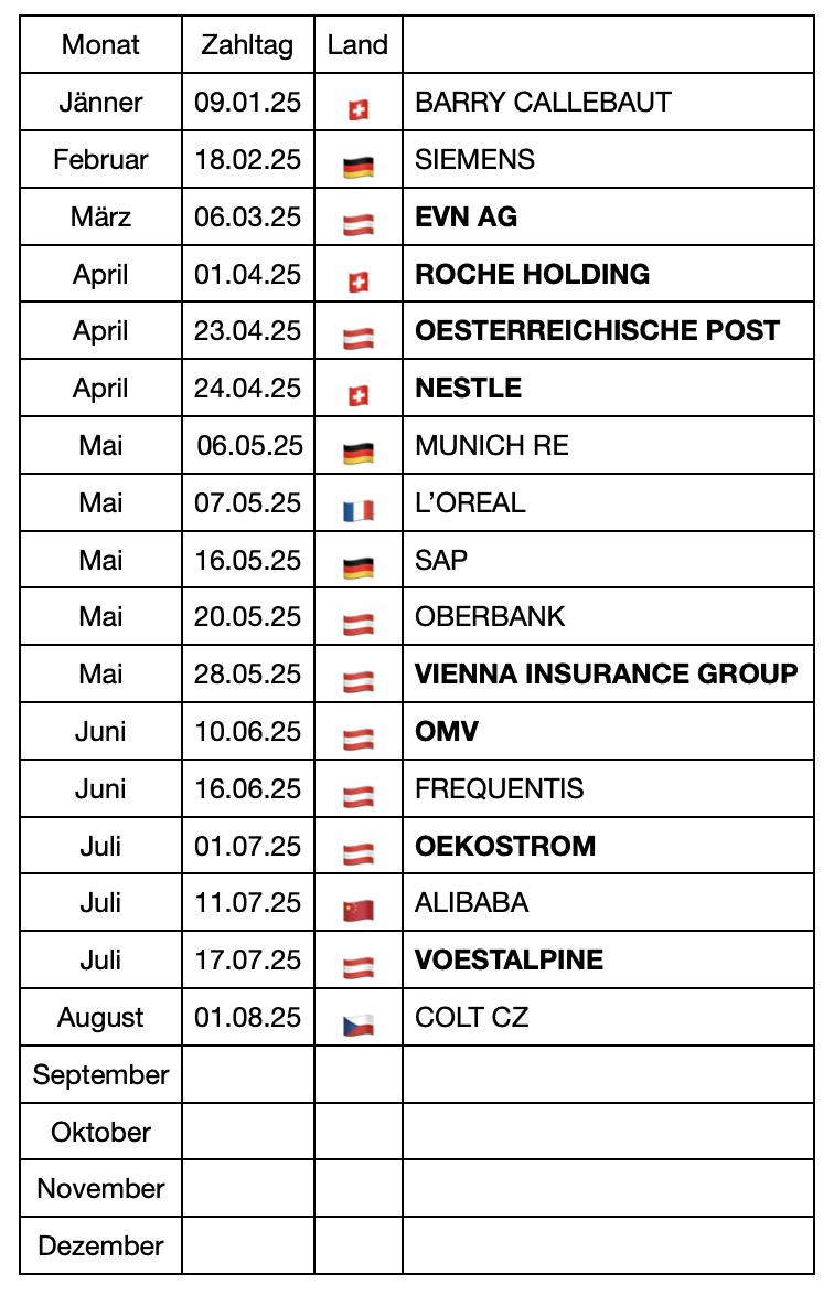 Die Jahresdividenden in 2025 sind bereits eingebucht und da kommt nix mehr…