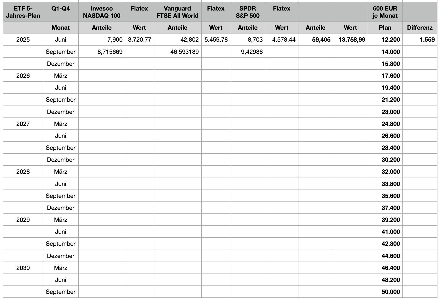 Also ETF – ein 5-Jahres-Plan wie für die Fonds: