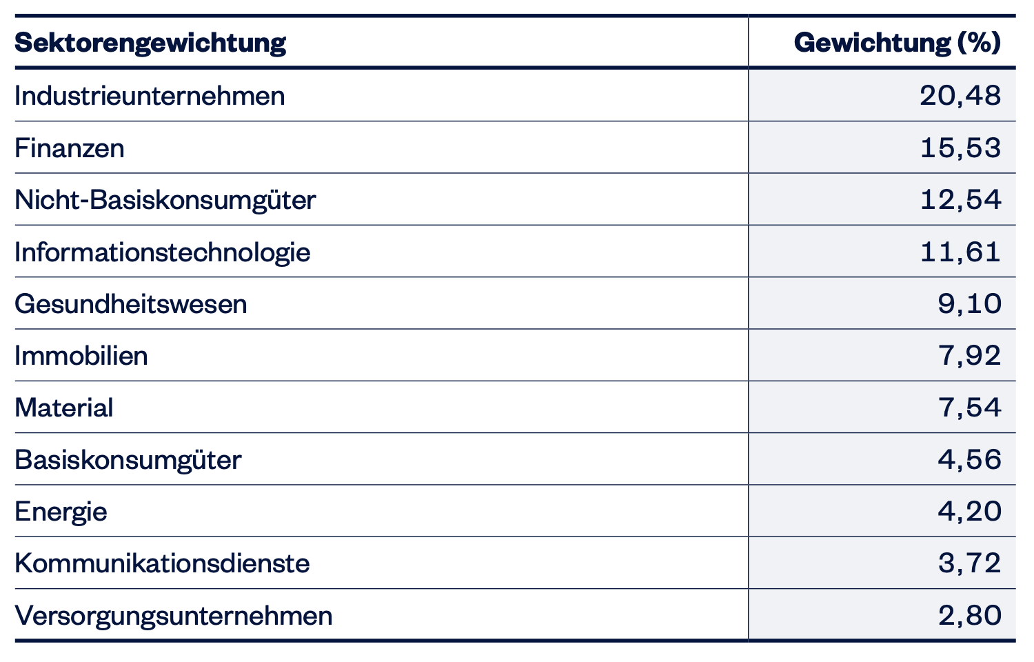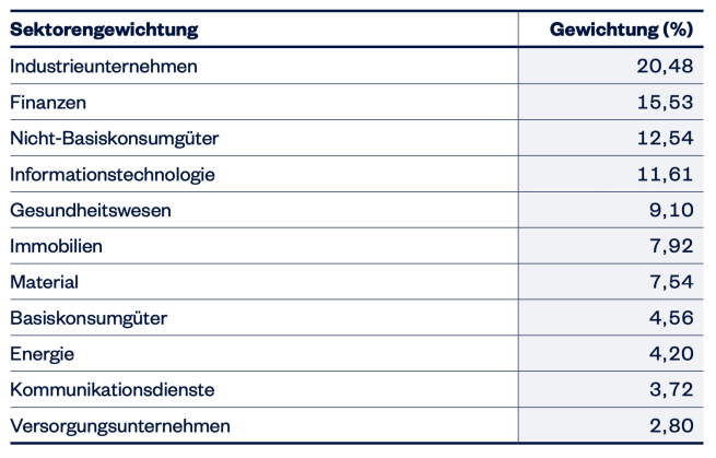 Die 11 Sektoren im Small Cap ETF sind auch anders als in den „üblichen ETF-Verdächtigen“…