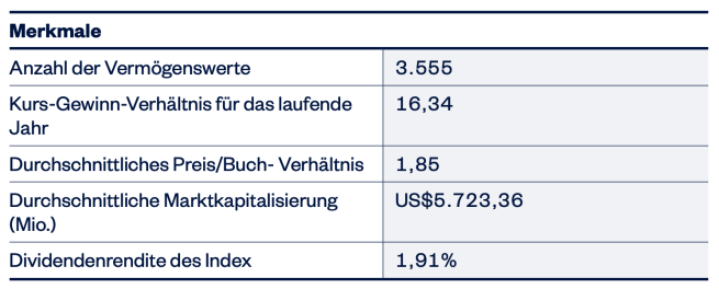 3.555 Unternehmen, Kennzahlen KGV mit 16,34 und Dividendenrendite von 1,91%:
