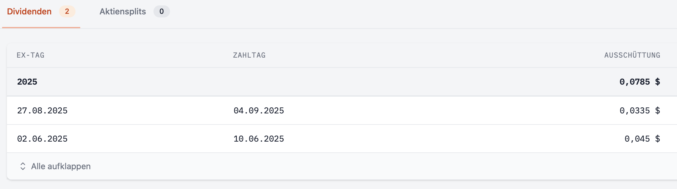 Ausgeschüttet wird quartalsweise und bisher erst zweimal: