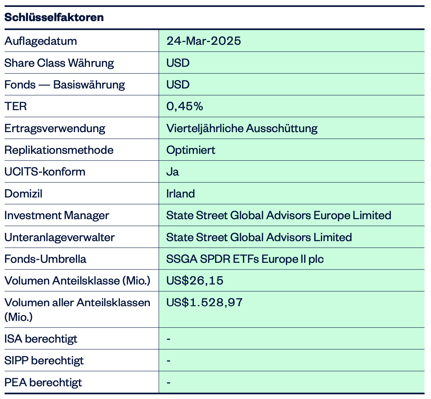 steuerlich muss ich abwarten weil es den ETF erst seit März 2025 gibt. Generell sollte es aber mit SPDR und der OEKB funktionieren. Mal sehen, ich brauche sowieso ca. 2 Jahre ob ich Vertrauen in einen ETF habe und dann weiß ich auch wie das steuerliche Thema laufen wird.