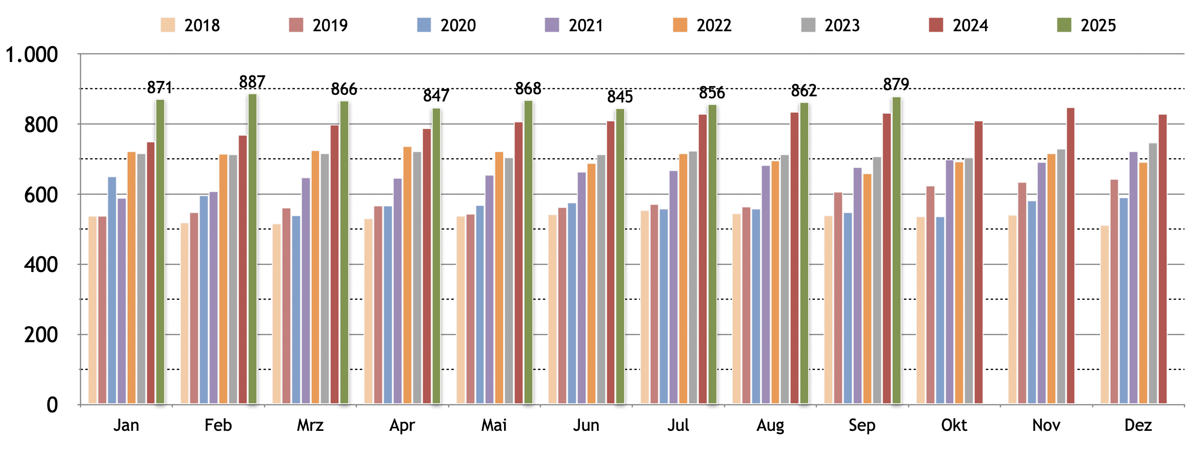 Das Plus zum Vormonat sind +17 TEUR oder +2,0% ✅