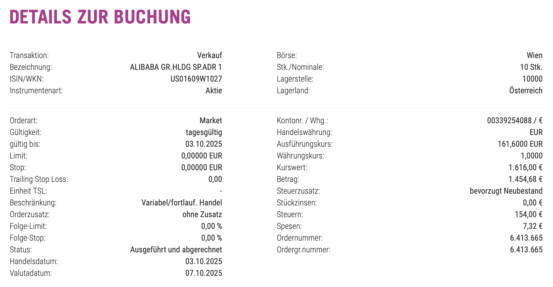 Die Reduktion der „Diversen“ Investments wird somit fortgesetzt. Alibaba war ca. 40% und Colt 15% im Plus.