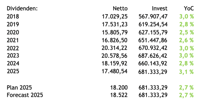 Dividenden Einkommen Kalenderwoche 42 / 2025: