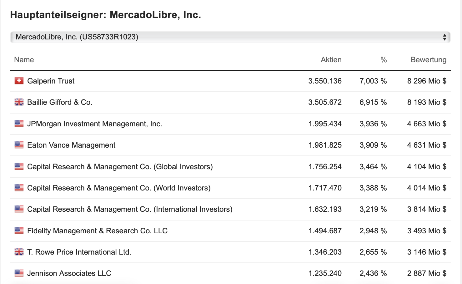 Der Gründer von 1999, Mr. Galperin hält noch selbst 7% der Aktien und hat als Geschäftsführer somit etwas Skin in Game 👍