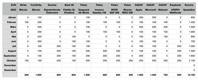 Die Sparpläne waren überdurchschnittlich, die 2,1K für Oktober waren knapp vor dem finanziellen Abgrund 🧐