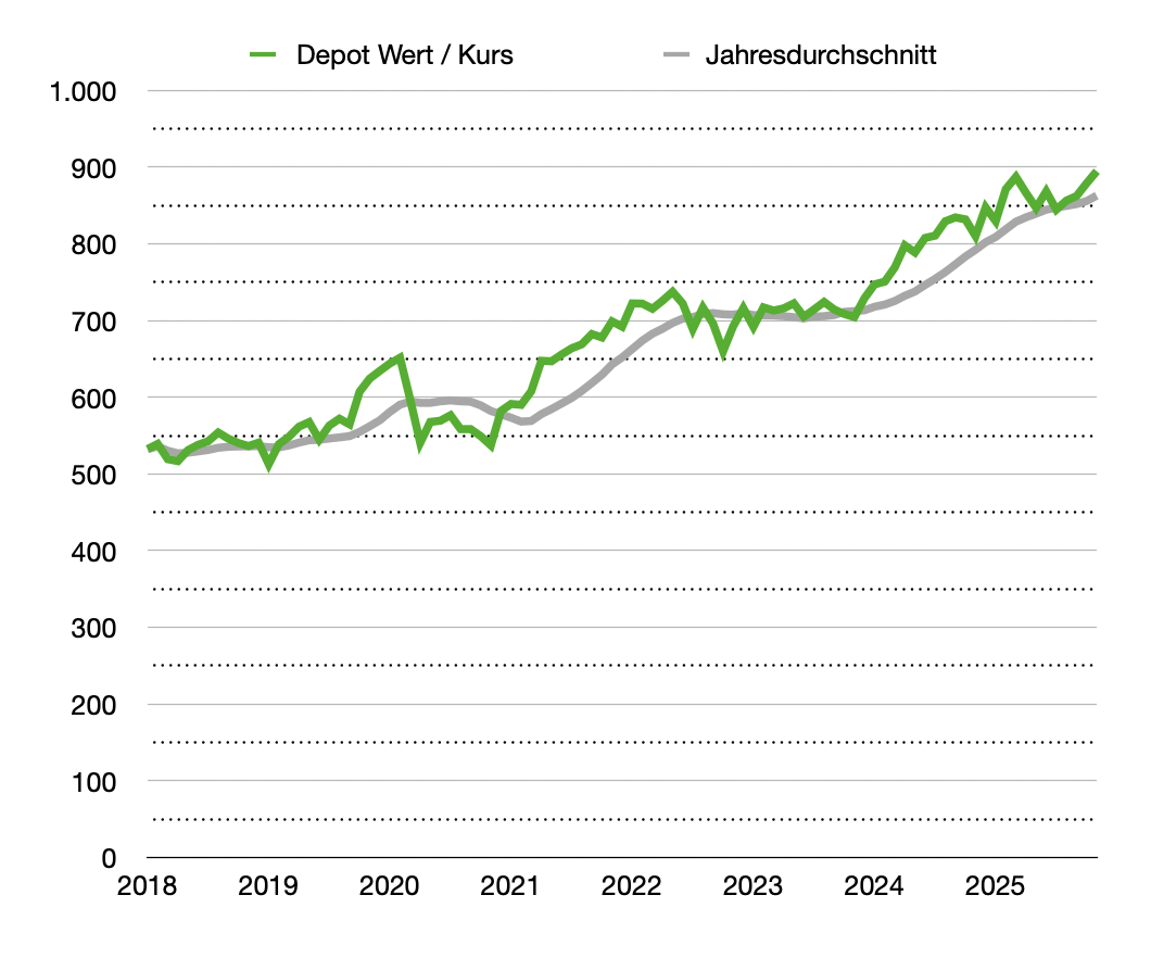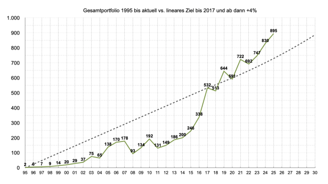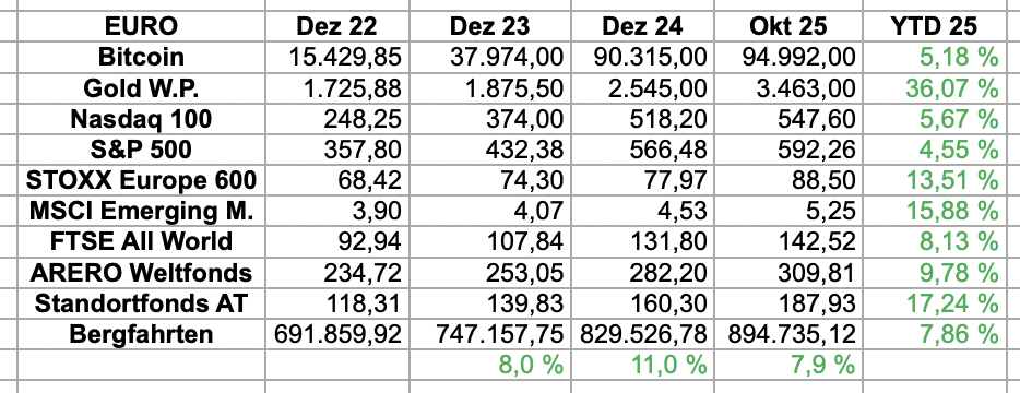 Mein Bergfahrten Portfolio steigt das dritte Jahr in Folge nach +8% in 2023, +11% in 2024 und +7,9% in 2025 🍀