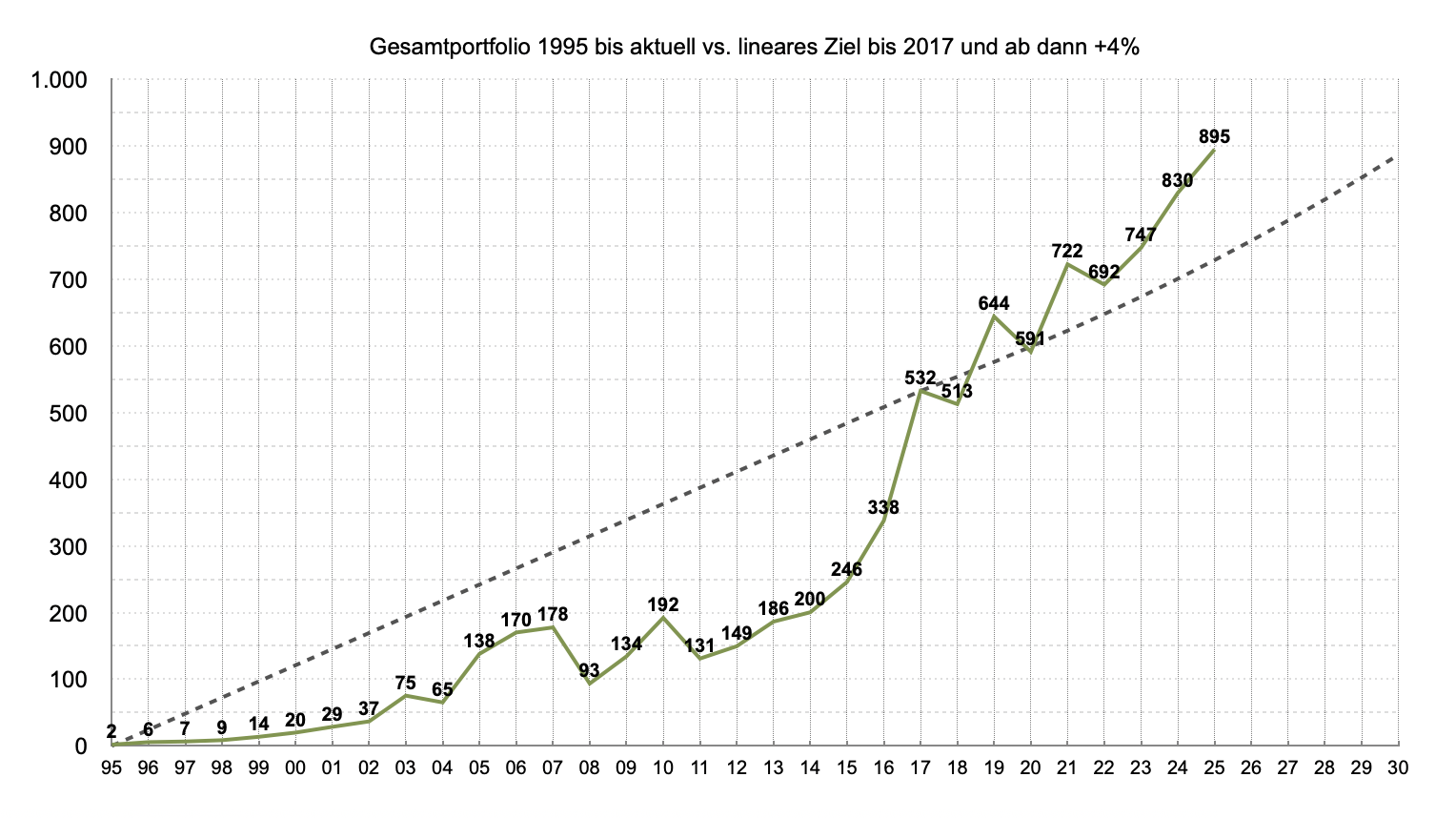 ja, Mr. Market meinte es in den letzten Jahren gut mit den Investoren. Ich kenne die Zukunft aber nicht also werde ich bis zu meiner Pension 2030 mal mein Spiel mit der finanziellen Unabhängigkeit weiter laufen lassen. Es macht spaß und kann mir vorstellen das wie die Herren Buffett und Munger aber dann weiter machen wollen.