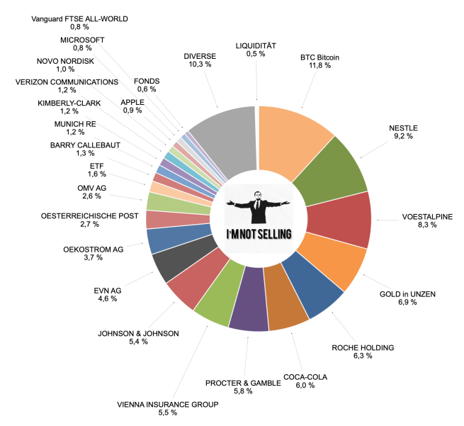 Betreffend Gesamtvermögen – es ist, finde ich irrelevant weil es nicht Teil meiner Investments ist. Wieviel mein Bauernhof, Garten, 1 Weingarten, 3 Äcker und ein 10 Jahre alter BMW wert ist weiß ich gar nicht, somit verschwende ich dafür keine Gedanken. Ich mag mich damit auch nicht 20-30 Prozent „reicher rechnen“. Die stehen eben auch nicht zur finanziellen Disposition wie auch eine staatliche Pension ab 2030 oder die vss. Lebenserwartung.