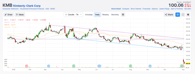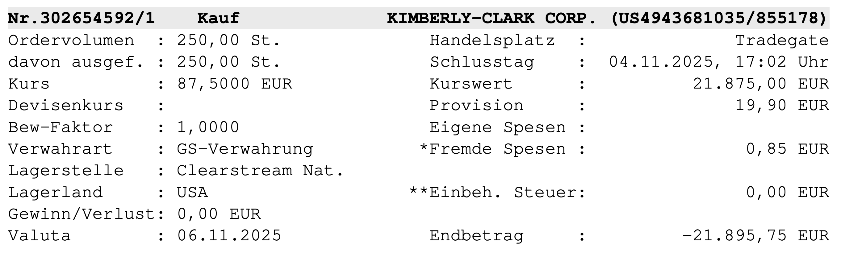 Also korrigierte Kimberly-Clark beim Kurs von rd. 120 USD auf 100 USD…