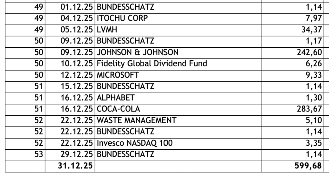 Die letzte Depotbewegung in diesem Jahr war die Rückzahlung von einem Darlehen aus 2017, eingetroffen am 30.12.2025 ☃️