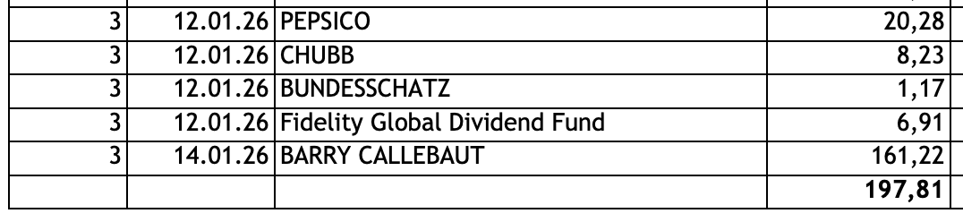 Dividenden Einkommen Kalenderwoche 03 / 2026: