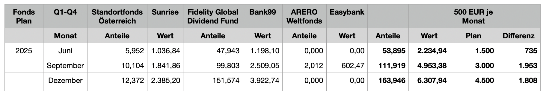 Auf der passiven Seite mit 3 ETF und 2 Fonds verfolge ich auch meine Quartalswerte. Auch hier liegen die IST zahlen nach dem Q4 2025 über den Plänen: