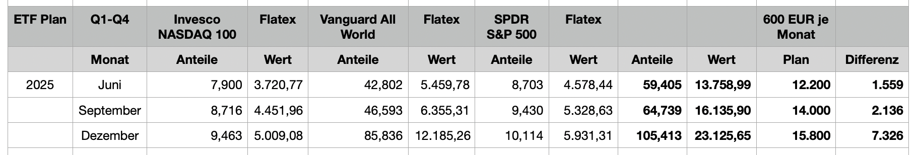 Beim Vanguard FTSE All World gab es einen 5K Nachkauf, daher einen ETF-Vorsprung oder Reserve für 2026er Nachkäufe. Daher kann ich meine Sparpläne reduzieren.