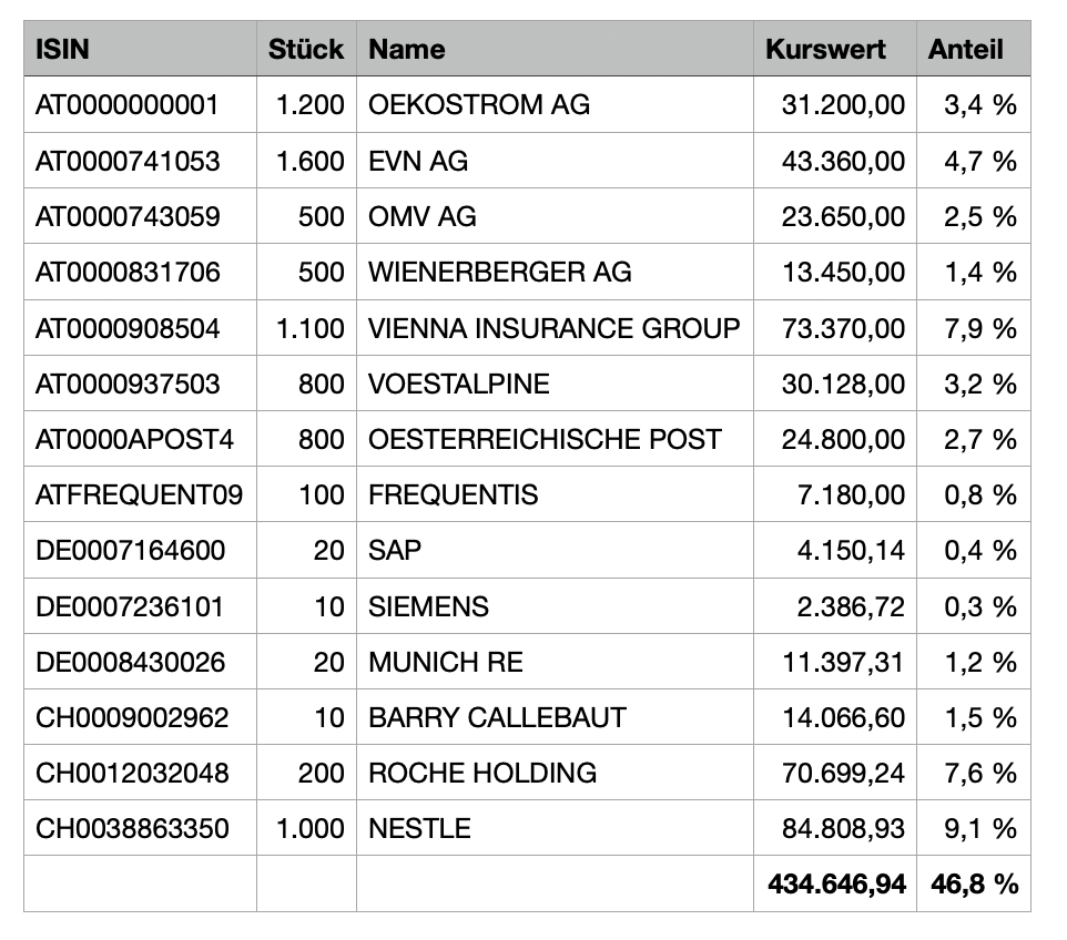 Vom Gesamtportfolio liegen darin rd. 47% in meinem Sprachraum, 26,6% Österreich, 18,6% Schweiz und nur 1,9% Deutschland.