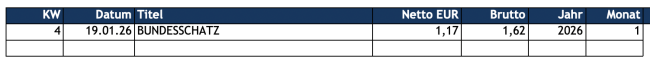 Der wohl letzte Eingang waren nur Zinsen aus dem Bundesschatz und die letzte Woche im Jänner ist wohl eine Null-Meldung ohne Bericht 📆