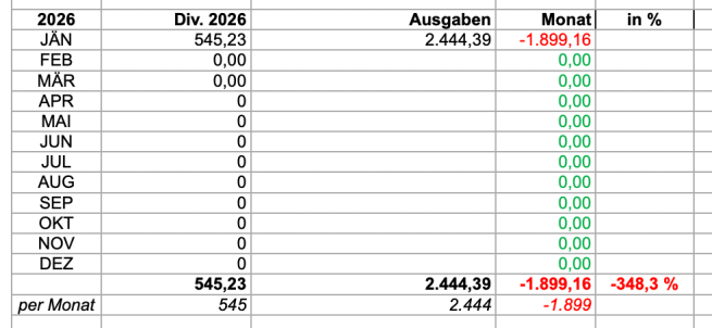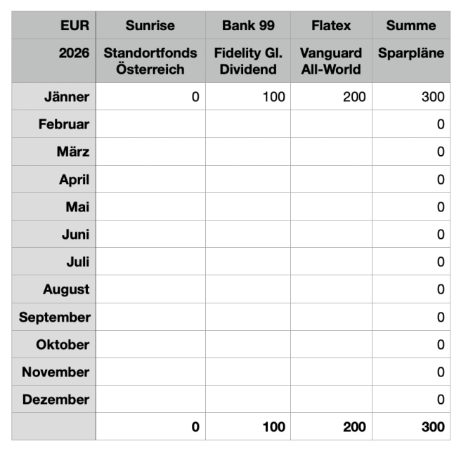 Wie für 2026 geplant, aber auch aus Budgetgründen wenig passive Investments und Sparpläne ☃️