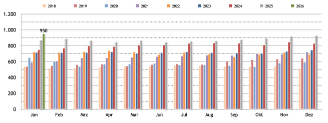 Der Jahresdurchschnitt wurde deutlich nach oben übertroffen. Monatswechsel mit finalem Stand ein neues All Time High 950 K ✅