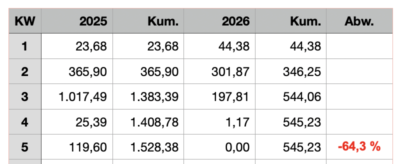 Ja, es ist einfacher mein Kassabuch mit Copy paste aus Numbers zu nehmen als eine zusätzliche Berechnung zu machen. Das ist mir den Aufwand nicht wert.