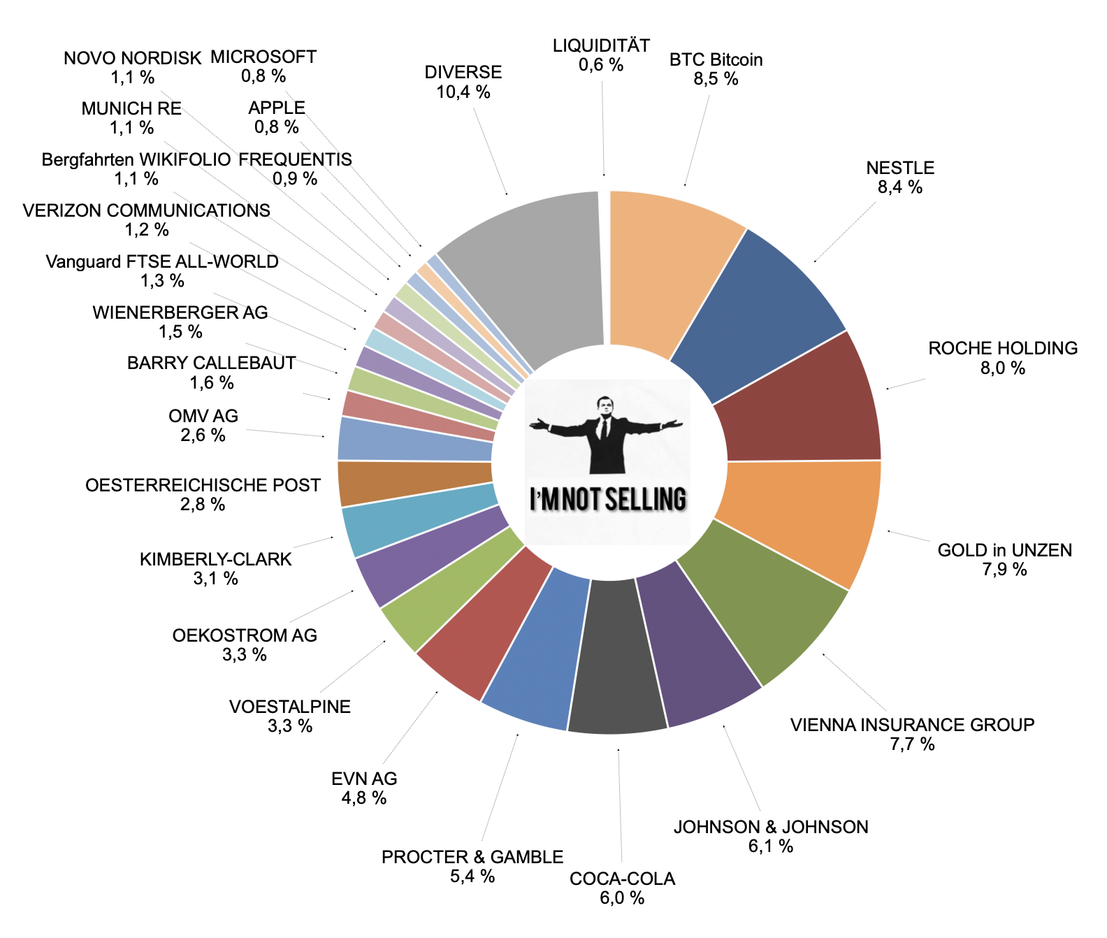 Mein Rebalancing erledigt Mr. Market und ich spare Kosten, Steuern und Spesen. Bitcoin und Nestlé sind zurückgekommen. Gold, AT-Aktien und passive US-Titel dafür im plus. 🇦🇹