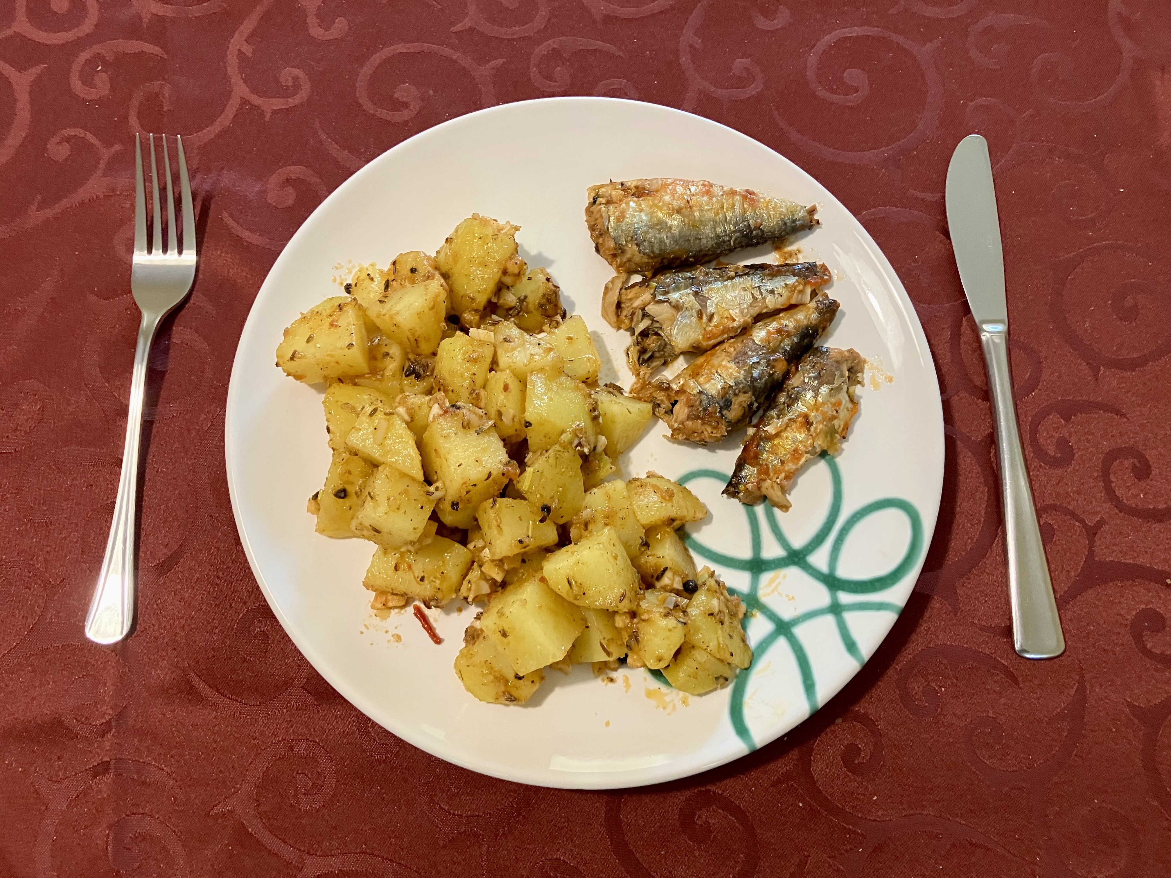 Die Bergfahrten Küche hat am Sonntag ein neues Rezept probiert – Sardinen 🐟 mit Knoblauch-Erdäpfel…