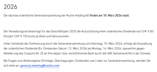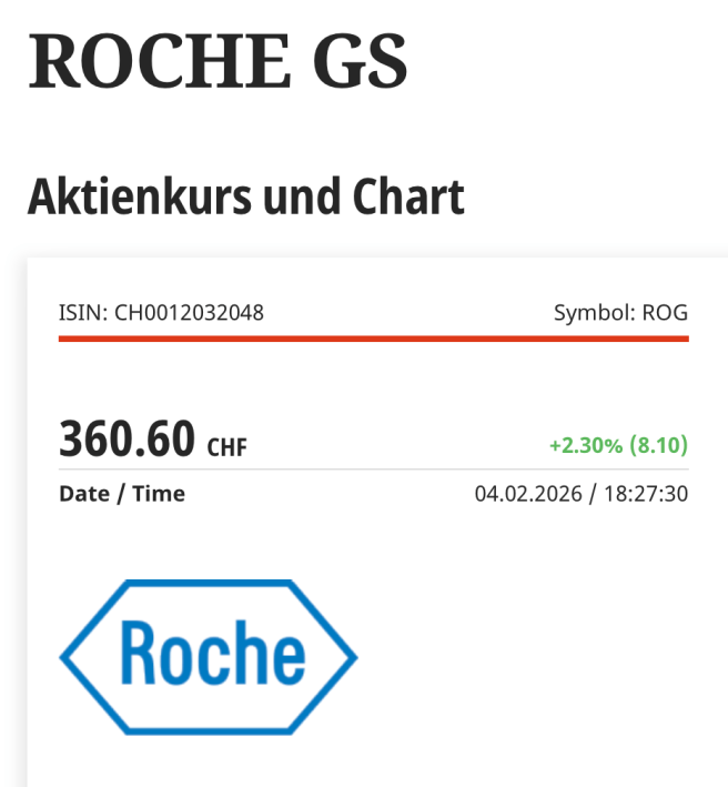 Roche – eine Erhöhung um 10 Cent. Da der schweizer Franke eher härter als der Euro ist werden die 1K sicher überboten werden 🇨🇭