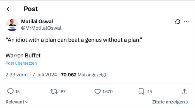 Orientiere dich an den Besten und behalte den Überblick! Falls ich doch ein Idiot sein sollte – ich habe zumindest immer mehrere Pläne in der Schublade 🤣