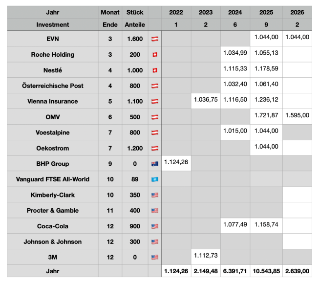 Das ist mein Dividendenplan für 2026. Wenn es klappt sind es mehr als 9 Positionen in 2025 🐢
