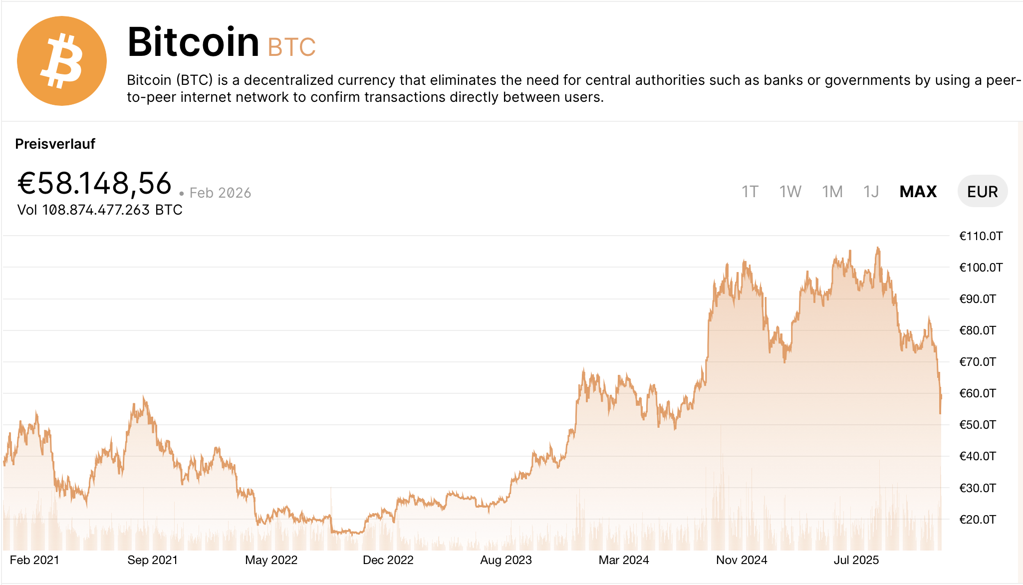 Mein Einstieg in Bitcoin war 2021 und wohl auch in einem Bullenmarkt – Chart in Euro 🇪🇺