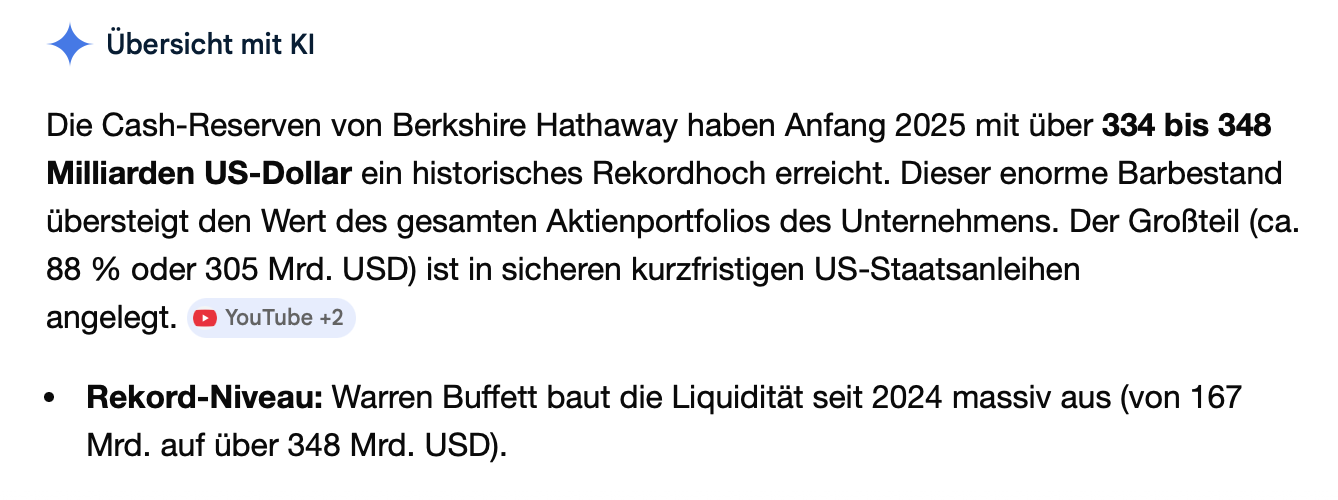 Warren Buffett wird mit seinem Cash-Polster schon recht haben – günstige Chancen findet man aktuell nicht…