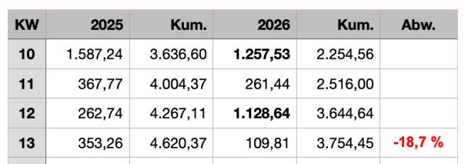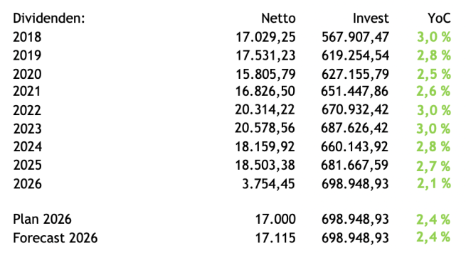 Dividenden Einkommen Kalenderwoche 13 / 2026: